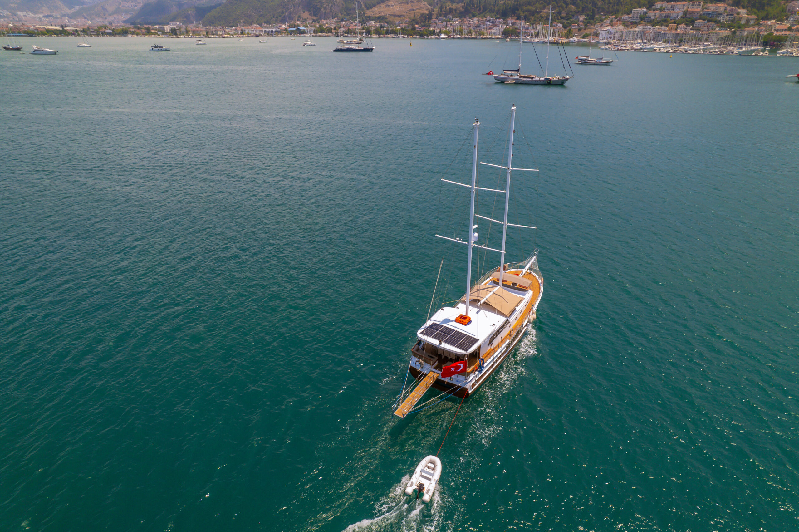 Kasapoğlu 6, 2022 yılında inşa edilmiş, modern tasarımıyla dikkat çeken bir teknedir. 21 metre uzunluğunda ve 6.50 metre genişliğinde olan bu yat, 2.50 metre draftı ile deniz yolculuğunda mükemmel bir konfor sunar. Güçlü 450 HP Iveco motoru, yüksek performansıyla uzun seyahatlerde güvenilir bir seçenek olmasını sağlar. Enerji verimliliği açısından zengin bir donanıma sahip olan teknede, 1 adet 17 kW ve 1 adet 25 kW Köhler jeneratörü bulunurken, 4 adet güneş paneli ve 5000 W Victron invertör de çevre dostu enerji üretimini destekler. Bu özellikleri sayesinde Kasapoğlu 6, hem sürdürülebilir bir yolculuk imkanı sunar hem de misafirlerinin konforunu ön planda tutar.