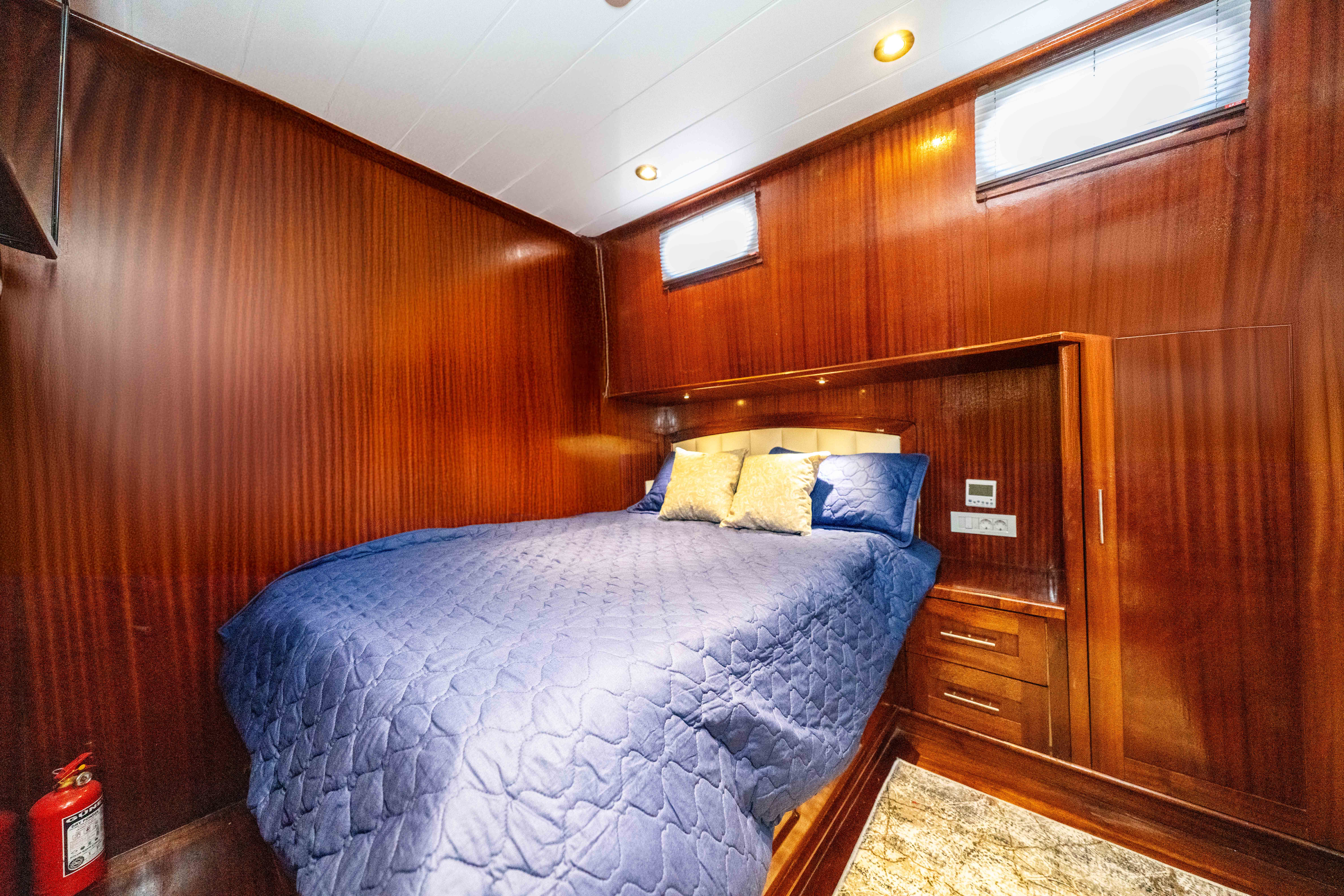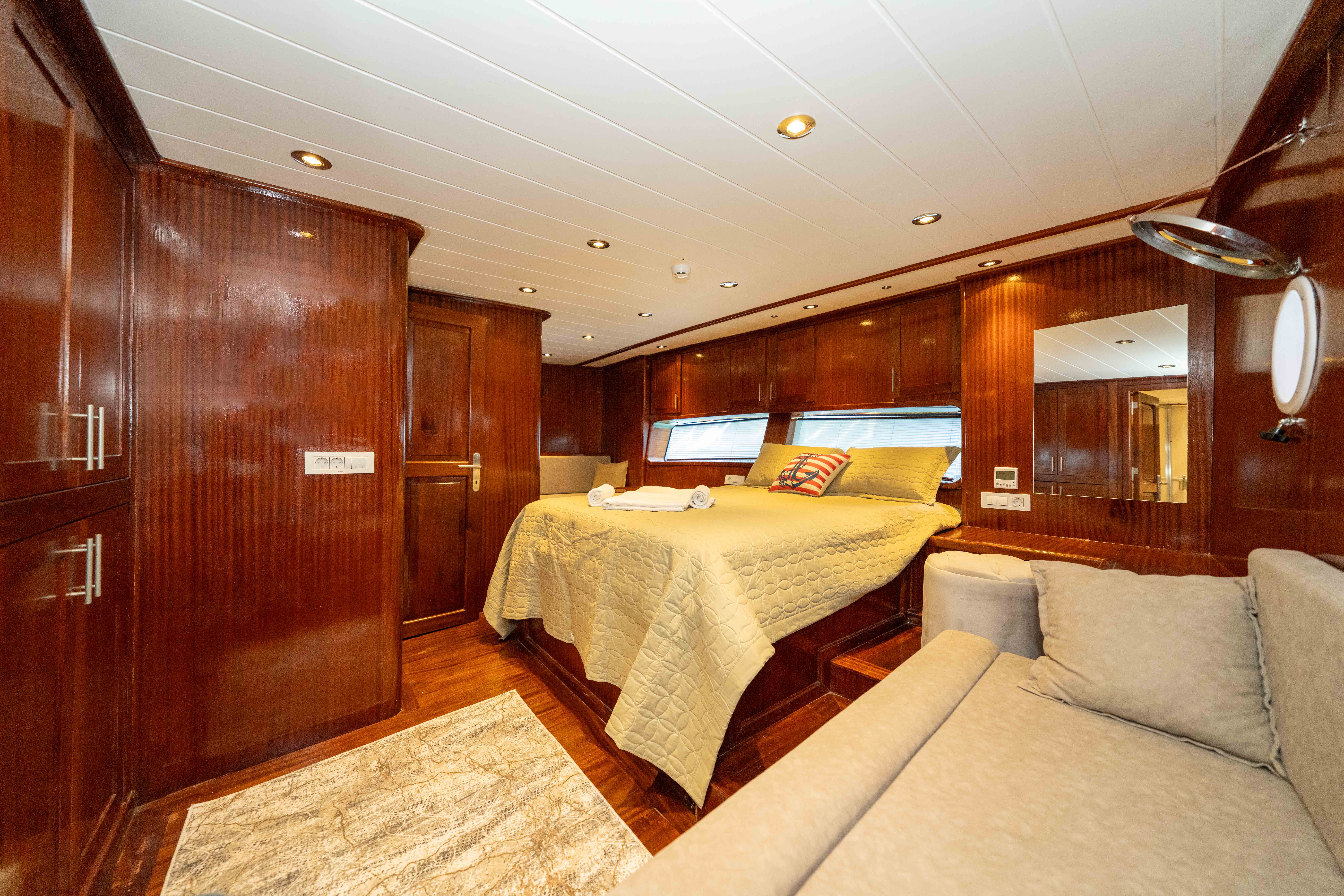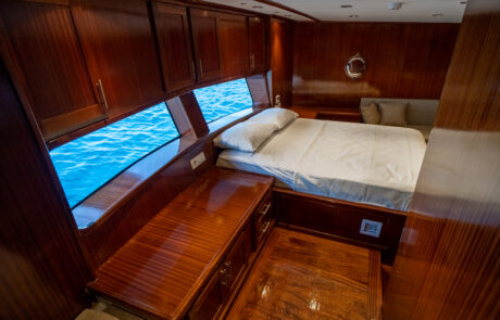 Kasapoğlu 6, toplamda 12 kişiye konaklama imkanı sunan 4 yolcu kabini (1 Master, 2 Double) ve 2 personel kabini ile donatılmıştır. Misafirlerin konforunu düşünerek tasarlanmış olan tüm kabinlerde modern TV sistemleri, klima, lüks duş kabinleri ve fön makineleri yer alır. Master kabinlerde oturma grubu ve ışıklı gardrop gibi ekstra konfor unsurları da bulunmaktadır. Yenilenen kabin yatakları, misafirlerin rahat bir uyku deneyimi yaşamasını sağlarken, kabinlerin geniş ve ferah yapısı deniz seyahatlerini daha keyifli hale getirir. Kasapoğlu 6, misafirlerine deniz tutkusunu tam anlamıyla yaşatmak için tasarlanmış bir yat olarak öne çıkmaktadır.